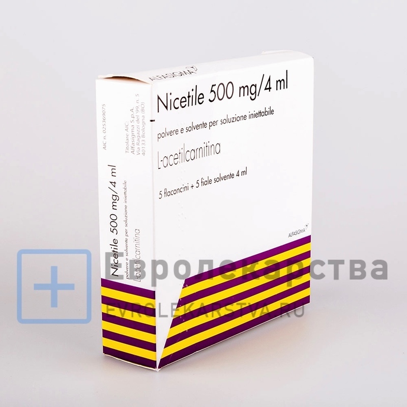 Действующее вещество: ацетилкарнитин 500 мг в одном флаконе.